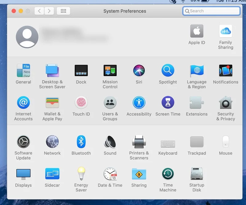 1. Appleメニュー>System Preferences (システム環境設定)を選択し、Apple IDをクリックします。