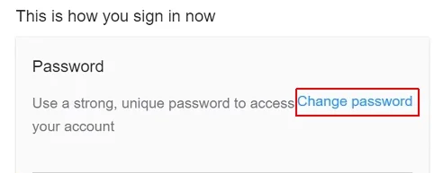 4. Scrollen Sie nach unten, bis Sie das Feld Password (Passwort) sehen. Klicken Sie auf Change Password (Passwort ändern).