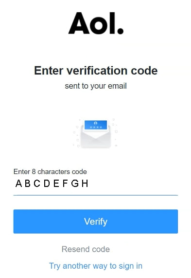 6. Geben Sie den Code ein (ABCDEFGH im Screenshot unten ist ein Beispiel, kein echter Code) und klicken Sie auf Verify (Verifizieren).