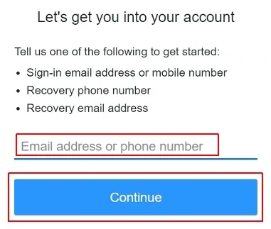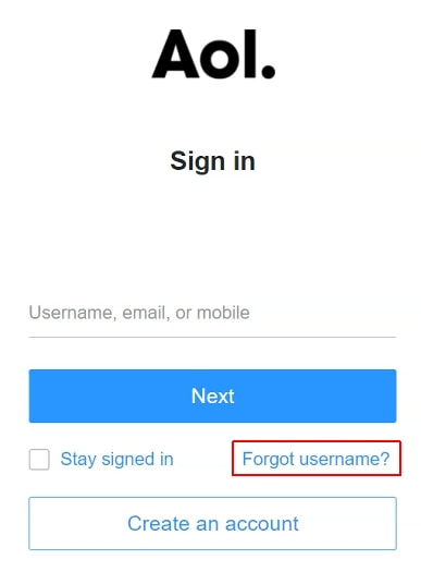 3. Geben Sie Ihre E-Mail-Adresse oder Mobiltelefonnummer für die Anmeldung ein. Verwenden Sie nur den ersten Teil der E-Mail, z. B. wenn Ihre AOL-Mail „[email protected]“ lautet, geben Sie „user“ ein. Klicken Sie auf Continue (Weiter).