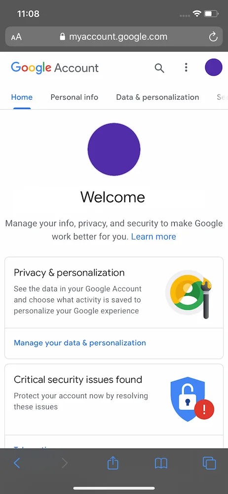 1. Loggen Sie sich bei Ihrem Google-Konto ein - https://myaccount.google.com/