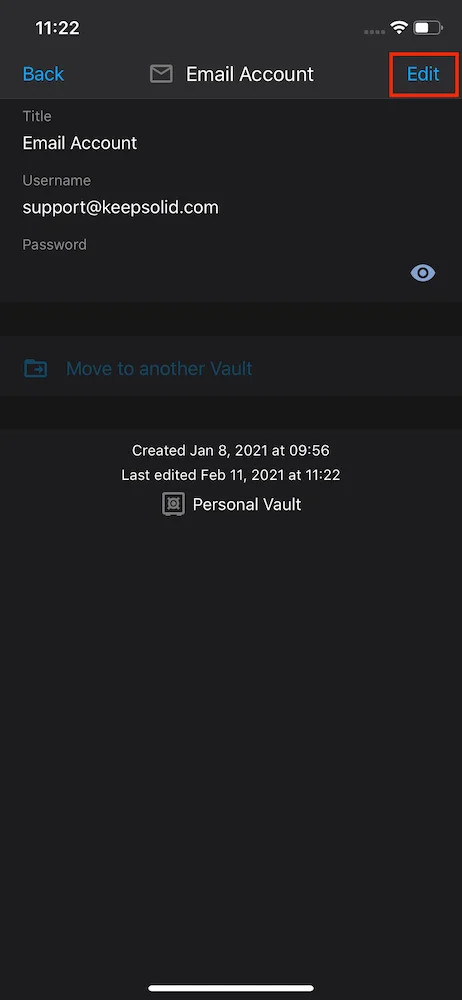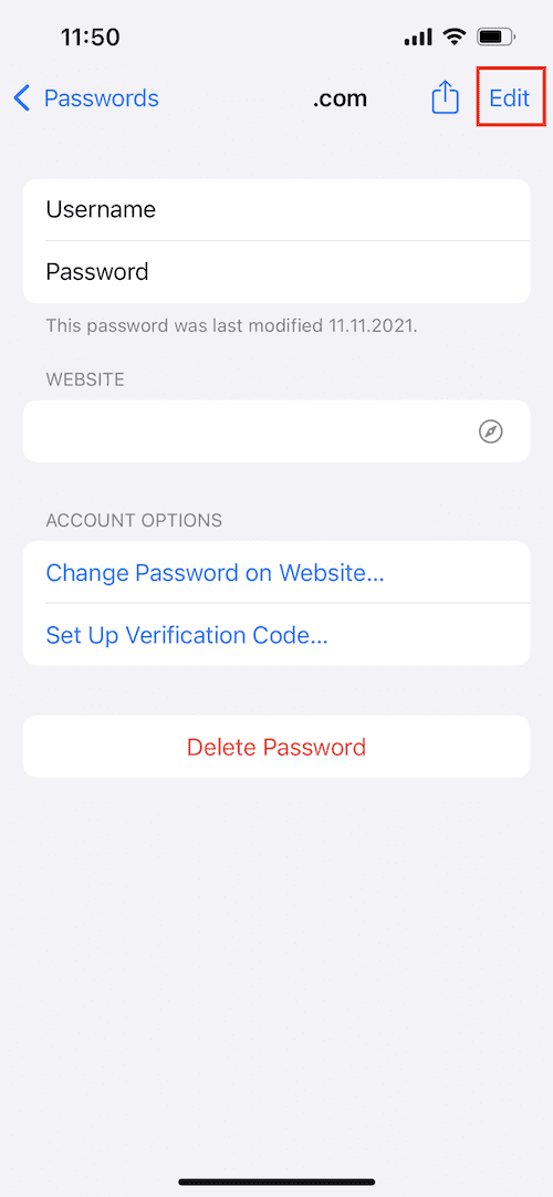3. Klicken Sie oben rechts auf Edit (Bearbeiten) und ersetzen Sie Ihr aktuelles Passwort durch ein neues im Feld Password (Passwort).