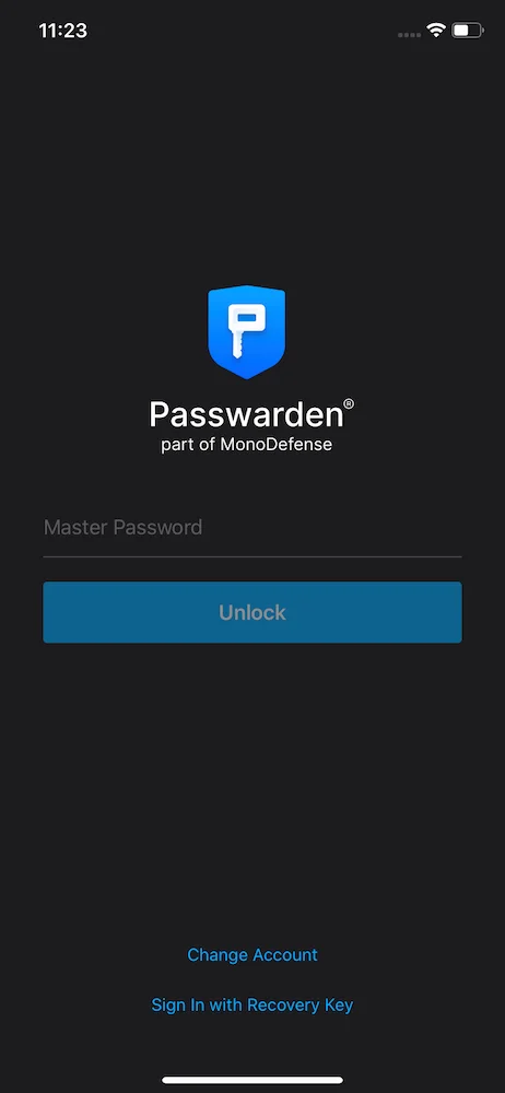 1. Loggen Sie sich mit Ihrem Master-Passwort bei der Passwarden-App ein.