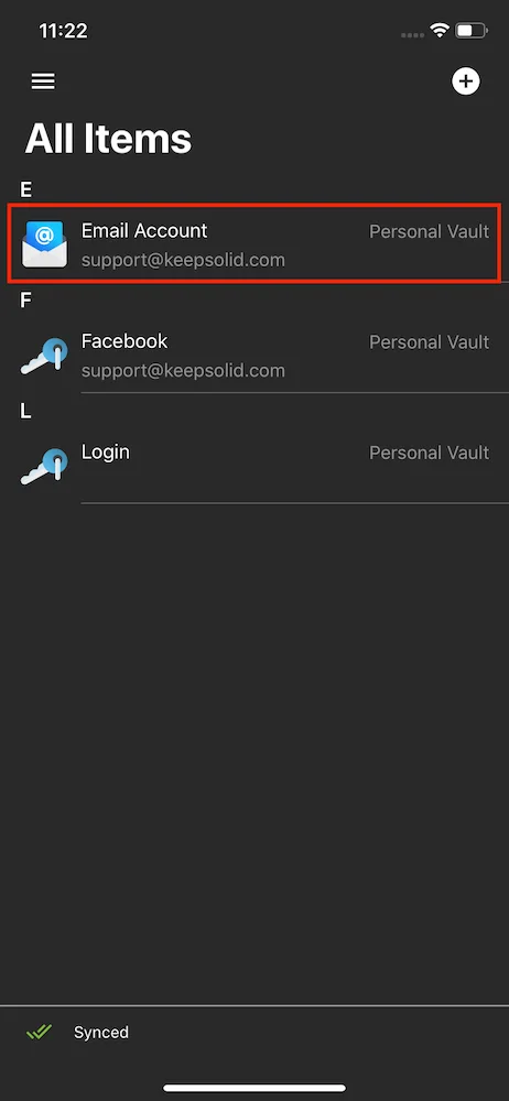2. Wählen Sie die E-Mail-Adresse, die Sie aktualisieren möchten, aus der Liste der gespeicherten Passcodes aus.