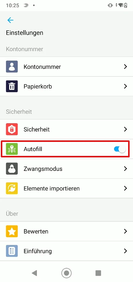 2. Schalten Sie den Schieberegler rechts neben dem Abschnitt Autofill (Automatisch ausfüllen) ein.