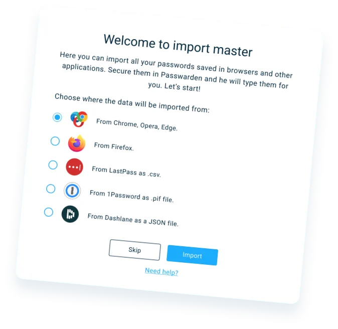 Das Wechseln eines Passwort-Managers ist ziemlich einfach. Laden Sie Passwarden herunter und übertragen Sie Passwörter aus anderen Quellen!