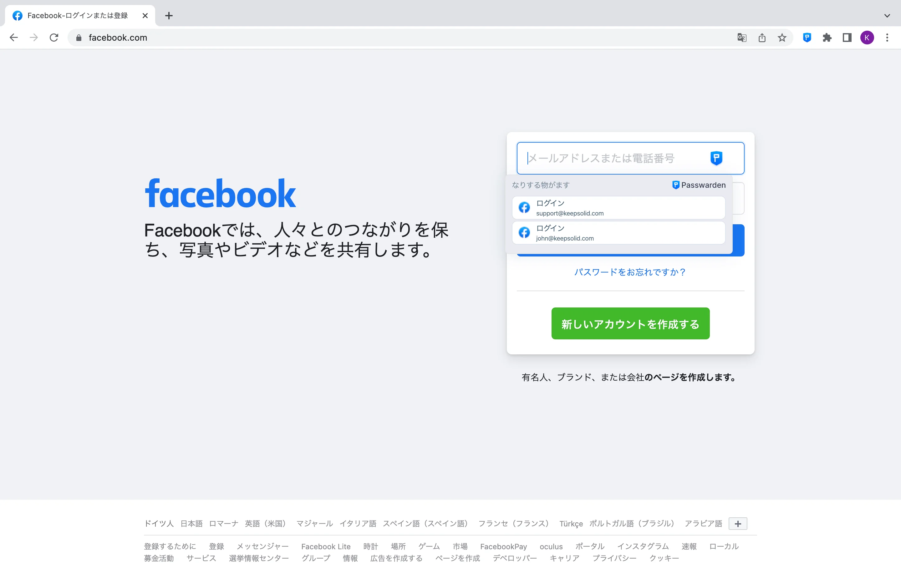 1. 任意のWebサイトにアクセスし、例えばFacebookを開いて、通常通りサインインします。