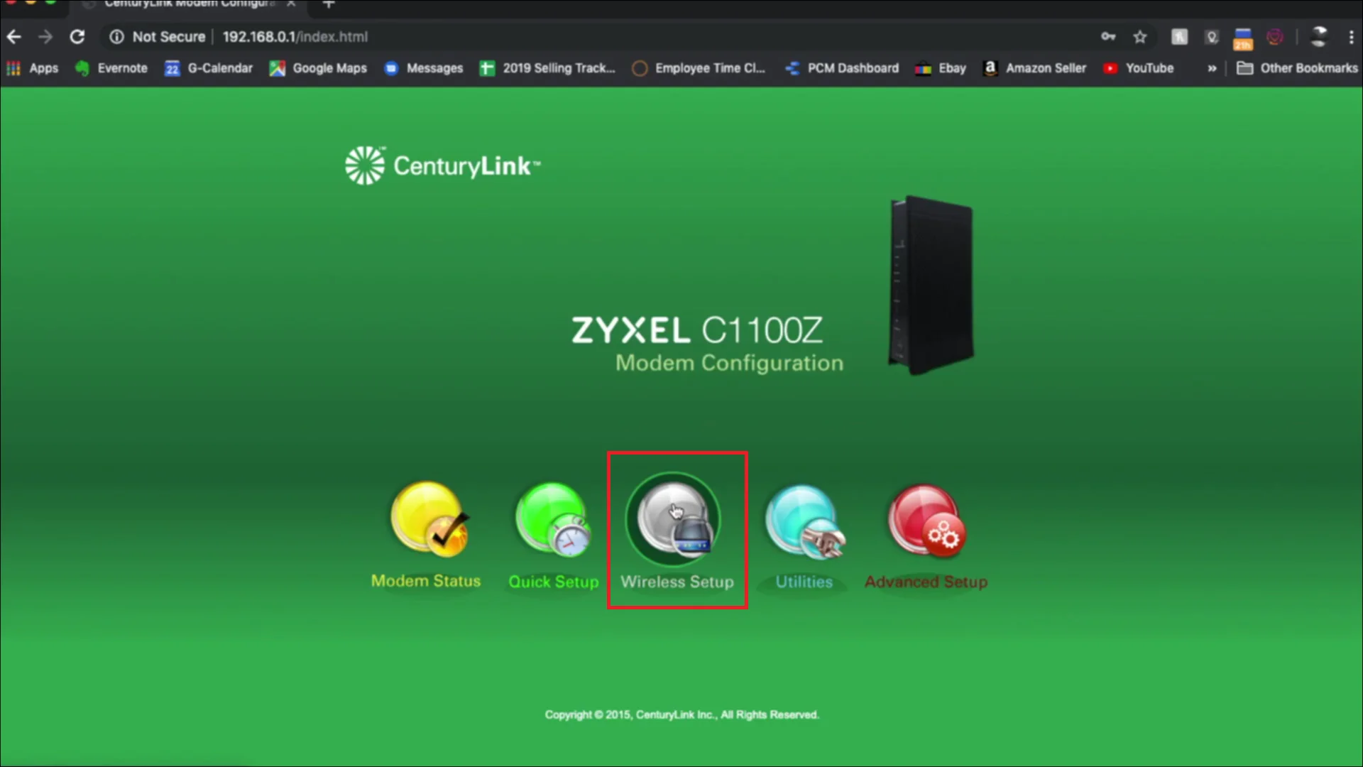 4. Выберите Wireless Setup(Настройка беспроводной сети), как вы можете видеть ниже.