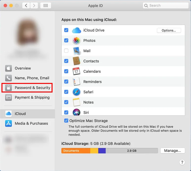 2. Klicken Sie auf Passwort & Security (Password &Sicherheit).