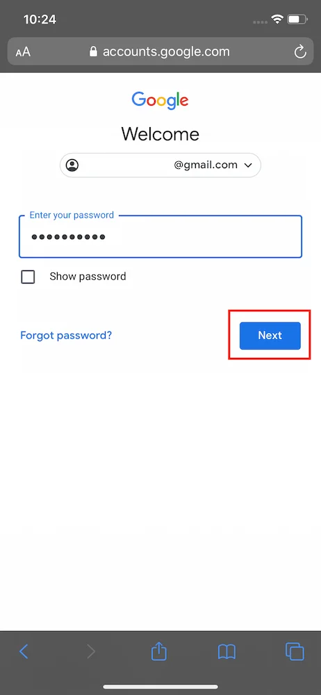 4. Aktualisieren Sie Ihren E-Mail-Passcode im Feld Password (Passwort).