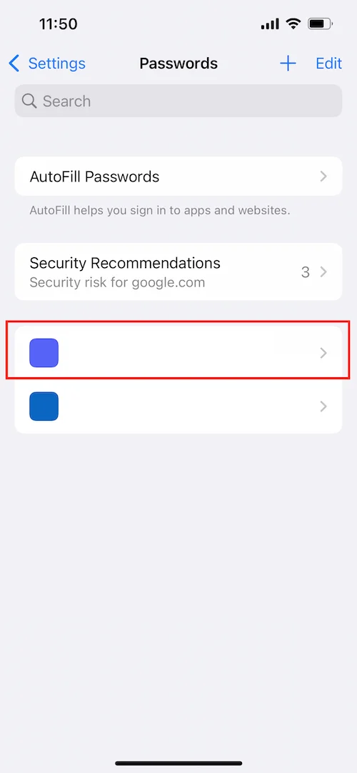 2. Wählen Sie die E-Mail-Adresse, die Sie aktualisieren möchten, aus der Liste der gespeicherten Passcodes aus.