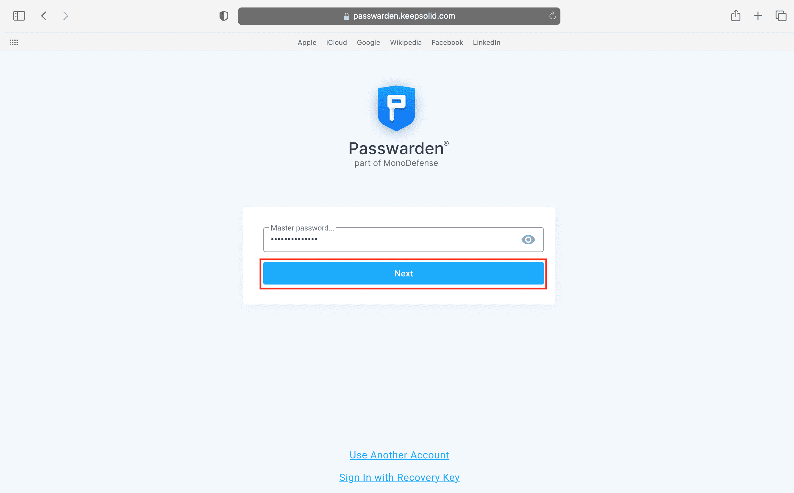 1. Melden Sie sich bei Ihrem Passwarden-Konto an.
