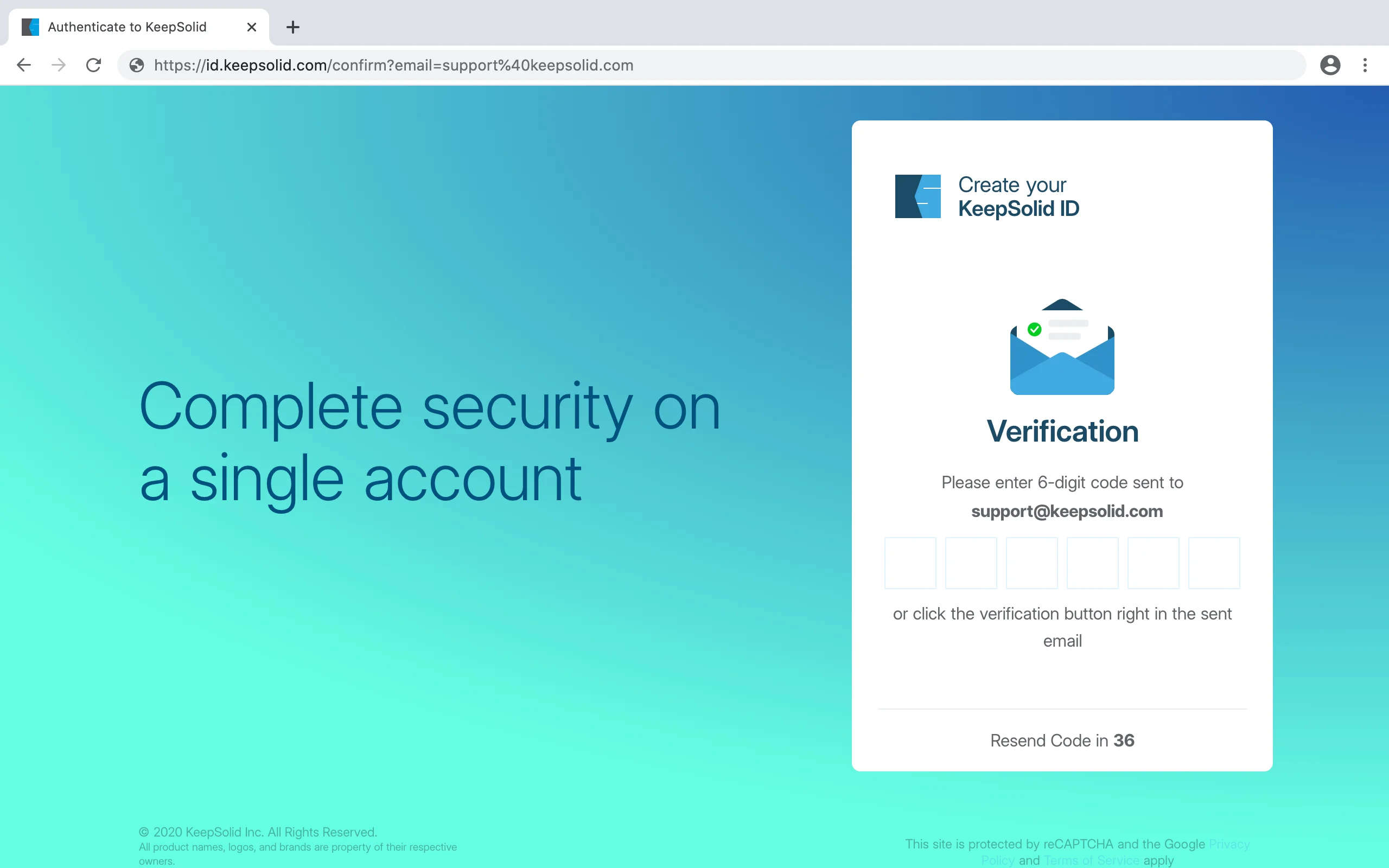 3. Im nächsten Schritt sollten Sie Ihre E-Mail-Adresse bestätigen. Geben Sie einen 6-stelligen Code ein, der an Ihre E-Mail gesendet wurde, oder klicken Sie direkt in der E-Mail auf Mein Konto bestätigen (Confirm my account).