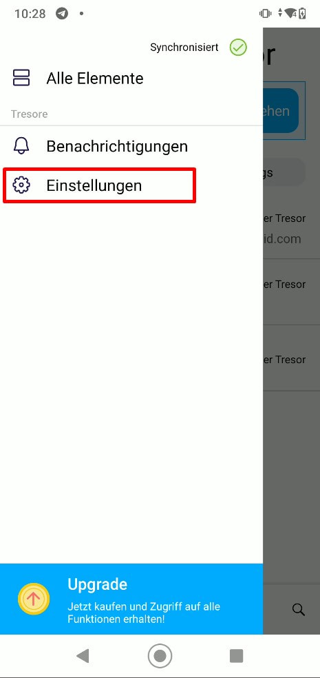 1. Öffnen Sie die Anwendung Passwarden und navigieren Sie zur Registerkarte Settings (Einstellungen).