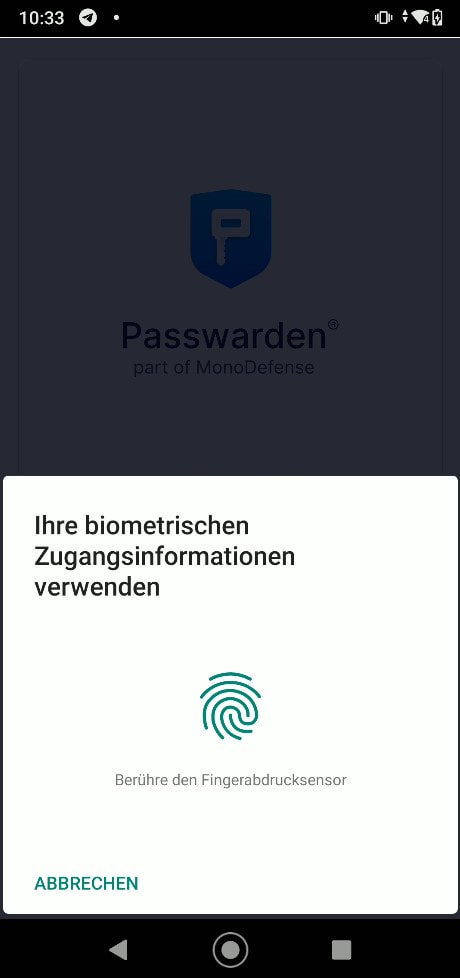 2. Tippen Sie auf dieses Label und entsperren Sie Ihr Passwarden-Profil.
