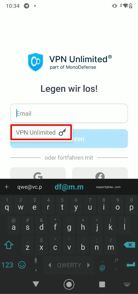 Hinweis: Die App VPN Unlimited wird als Beispiel genommen. Die Autofill-Funktion von Passwarden funktioniert reibungslos mit allen auf Ihrem Android-Gerät installierten Anwendungen.