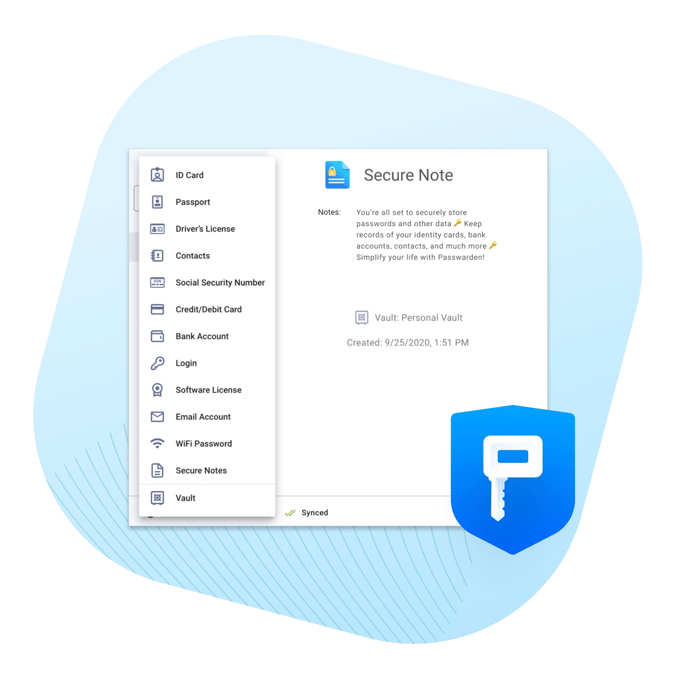 Almacene cualquier tipo de datos: contraseñas, datos de cuenta, información personal, detalles de pago y notas de seguridad.