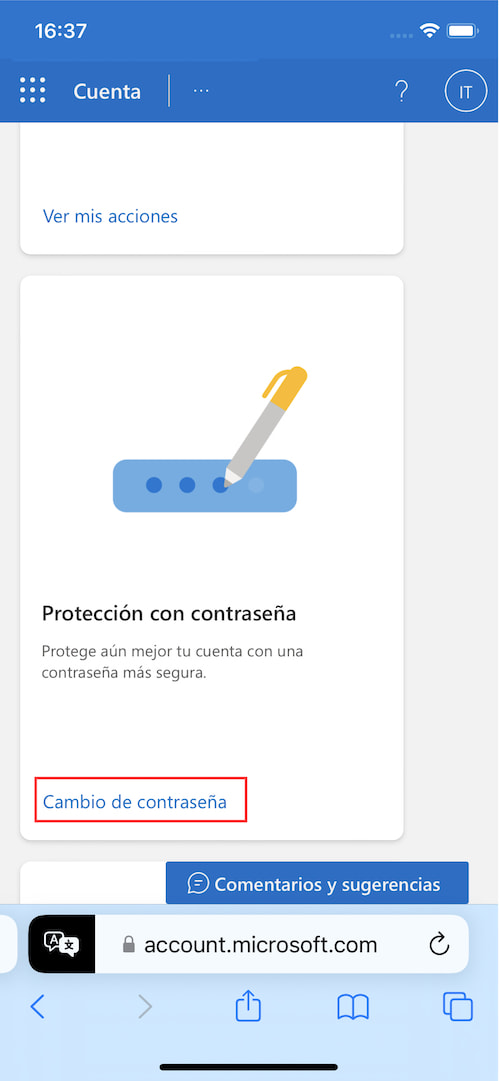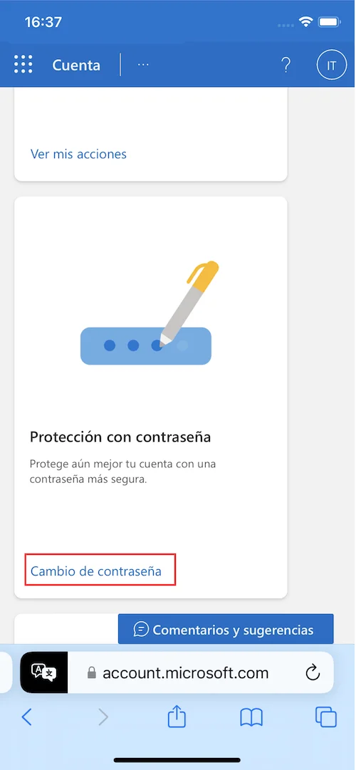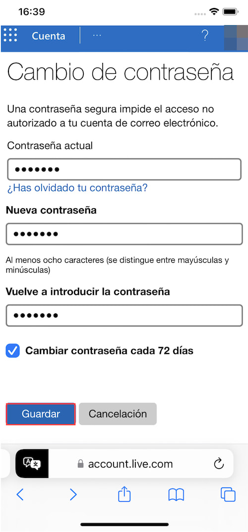 ¡Muy bien! Tu contraseña de Outlook se ha cambiado con éxito. Recuerda que se actualizará automáticamente en el dispositivo en el que te encuentras ahora.