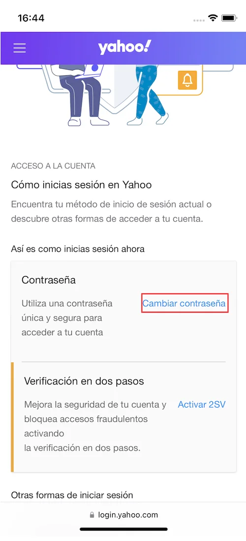 1. Inicia sesión en la página de Account security (Seguridad de tu cuenta) de Yahoo: https://login.yahoo.com/account/security