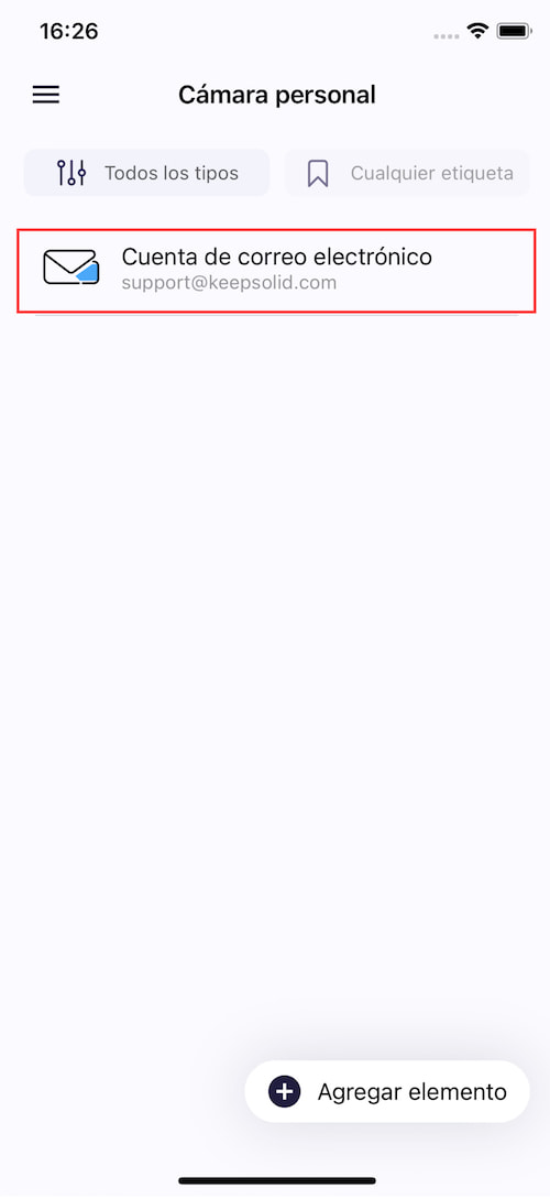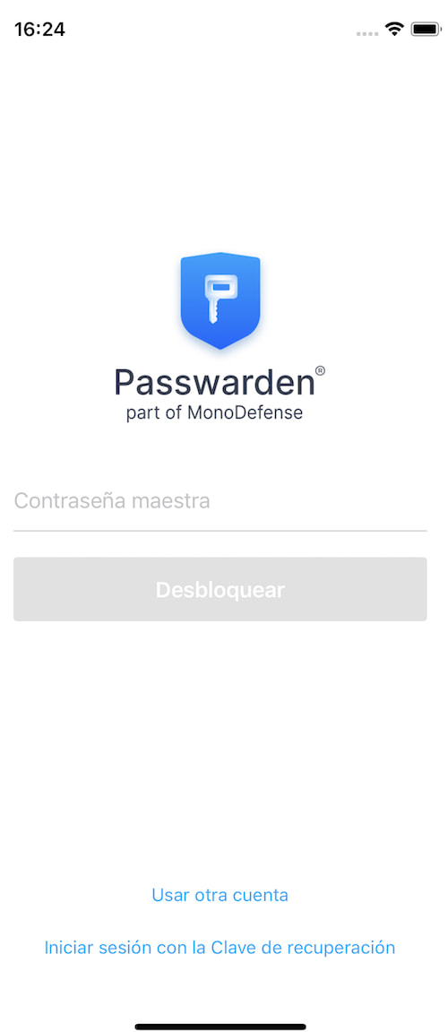 1. Inicia sesión en la aplicación de Passwarden usando tu contraseña maestra.
