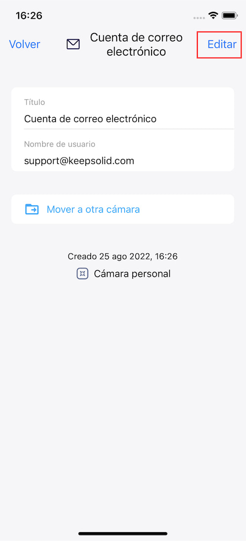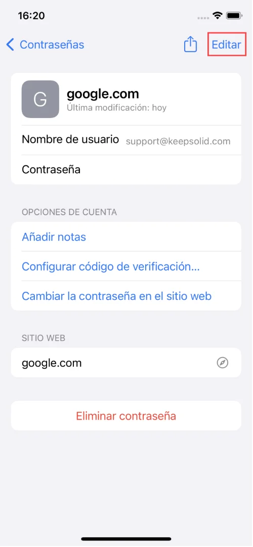 3. Haz clic en la opción Edit (Editar), la cual está situada en la esquina superior derecha y reemplaza tu contraseña actual por una nueva en el campo Password (Contraseña).
