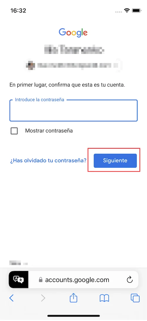 3. Selecciona el campo Password (Contraseña) y verifica que eres tú iniciando sesión nuevamente.