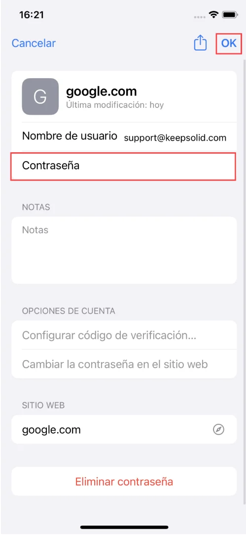 Nota: Primero debes cambiar la contraseña de tu servicio de correo electrónico en la aplicación de correo electrónico o en el sitio web.