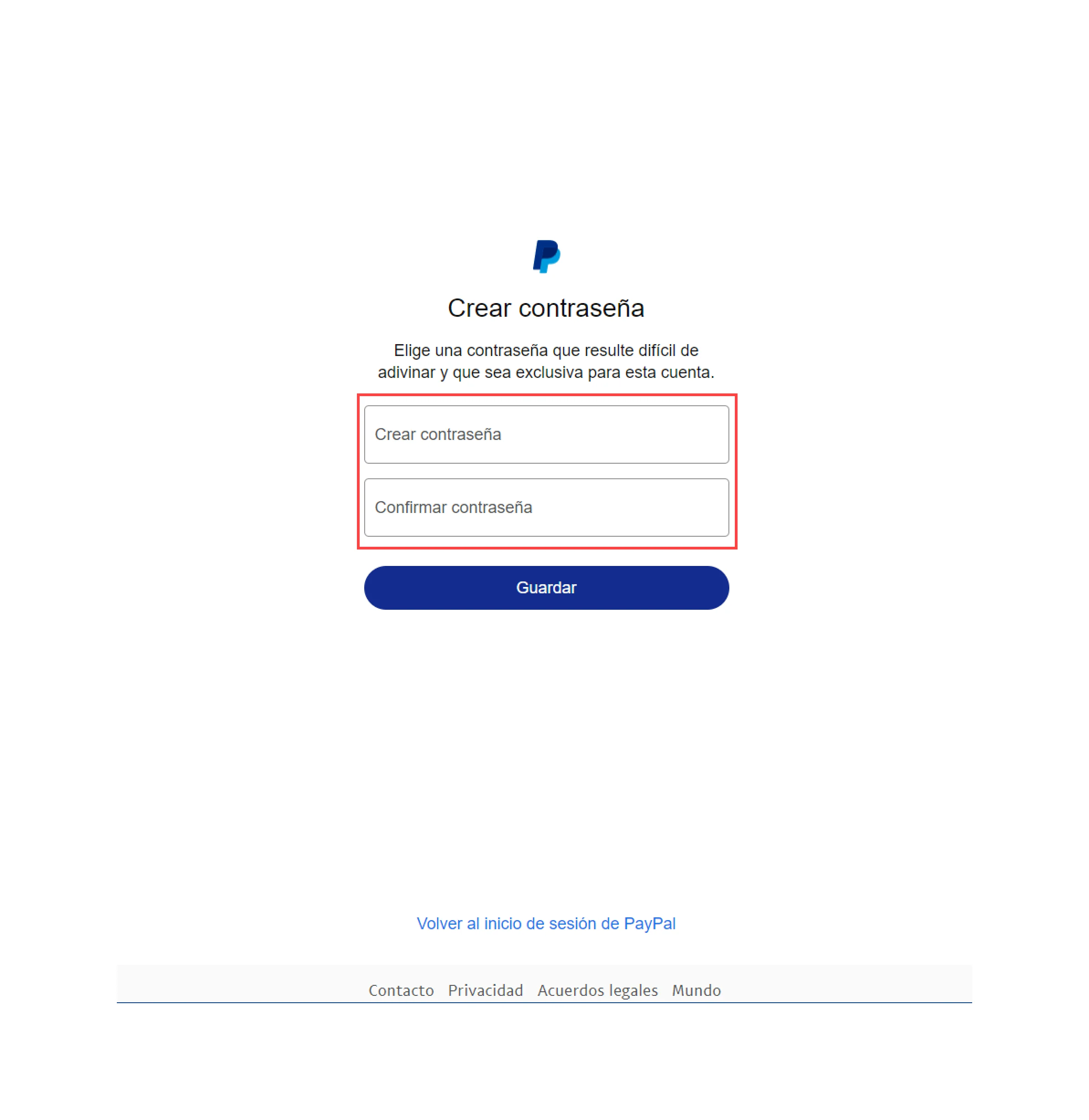 4. Actualiza tu contraseña de PayPal en el campo Password (Contraseña).