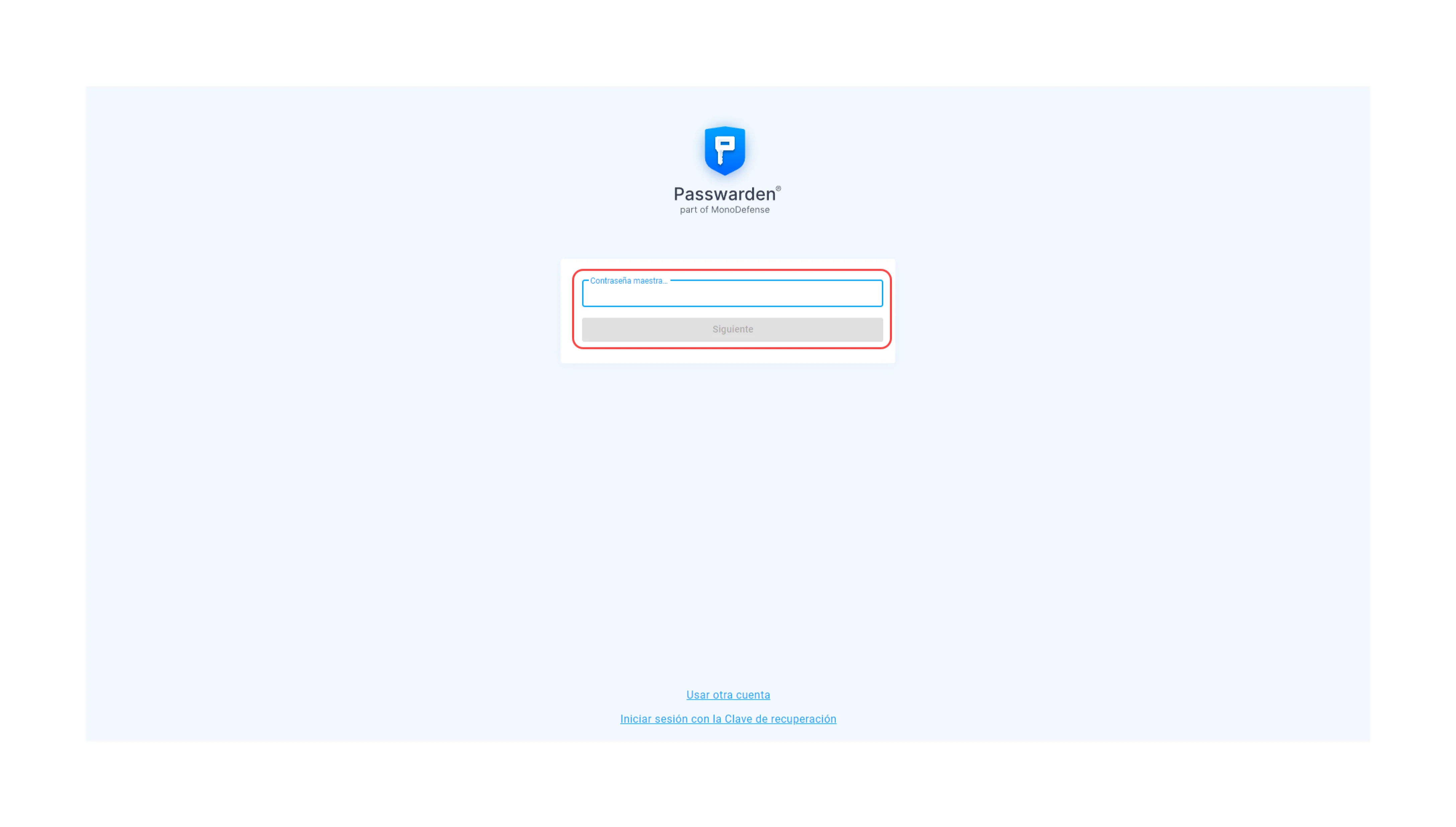 1. Inicia sesión en tu cuenta de Passwarden usando tu contraseña maestra.
