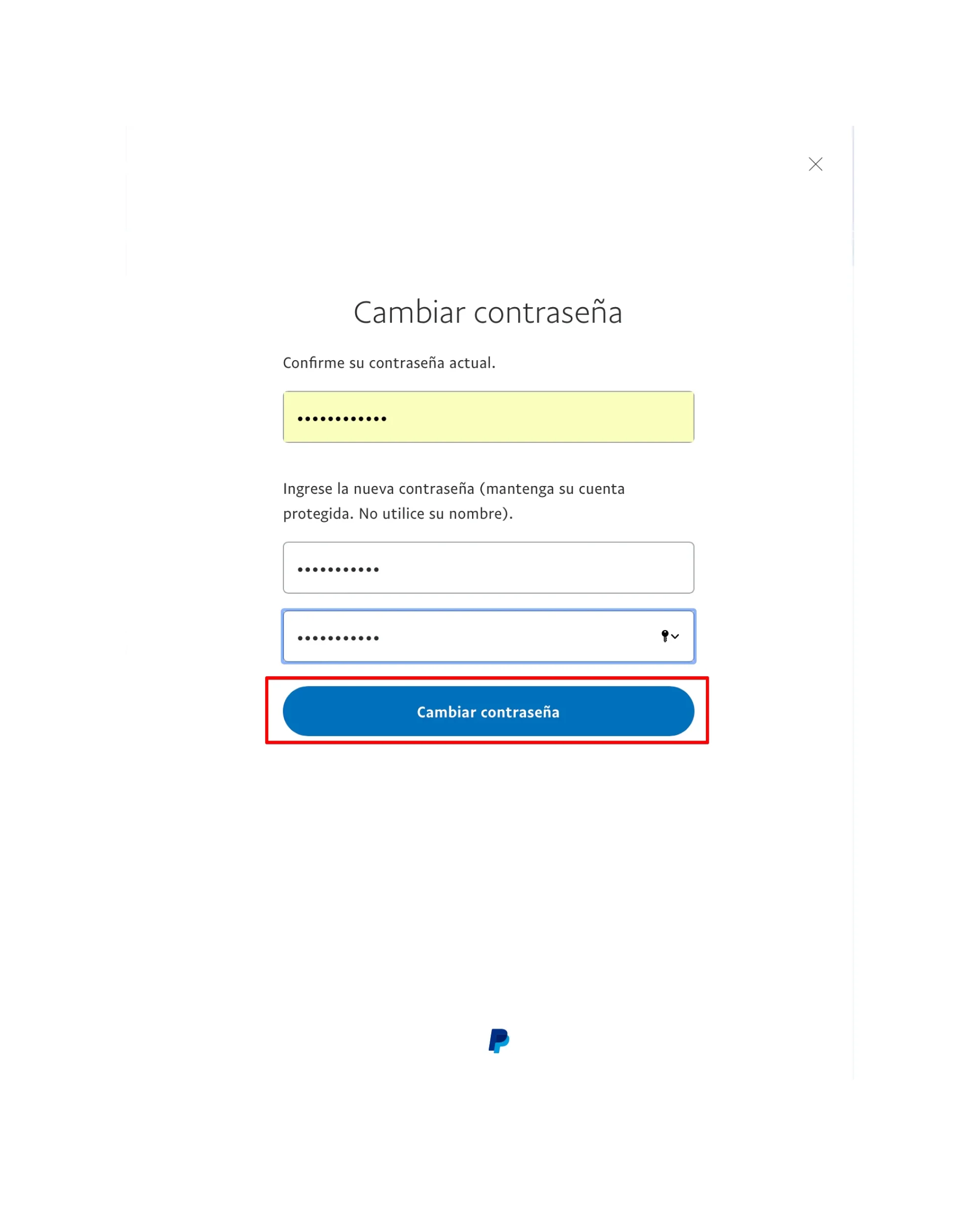 Nota: En primer lugar, debes cambiar tu contraseña de PayPal en la aplicación de PayPal o en el sitio web siguiendo las instrucciones anteriores.