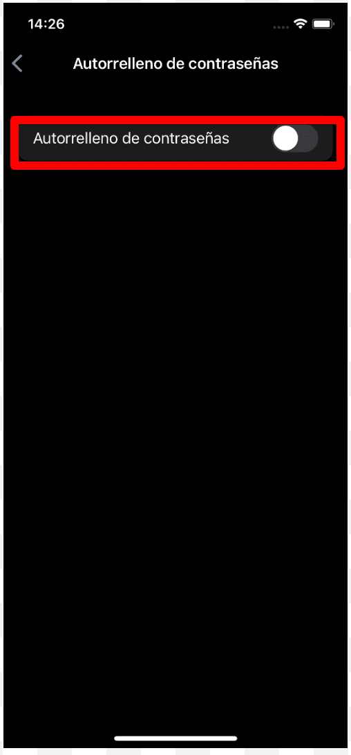 3. Activa la opción AutoFill Passwords (Autocompletar Contraseñas).
