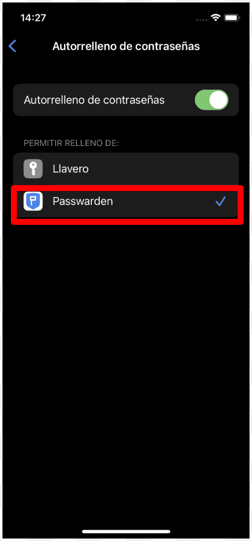 4. Activa la aplicación Passwarden y asegúrate de desactivar Keychain.