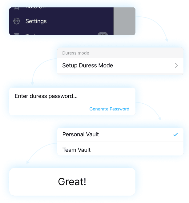 La integridad y confidencialidad de sus contraseñas son sin duda importantes, pero nada es más importante que su seguridad. Entonces, si alguien lo hace desbloquear su gerente de contraseña bajo coacción, diga Sí y use su Contraseña Duress mode para ocultar todos sus datos confidenciales.