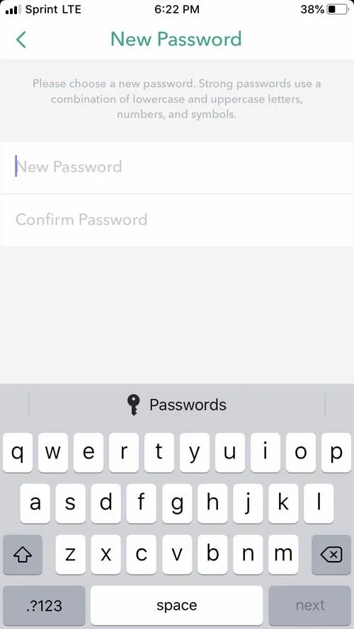 5. Enfin, changez votre mot de passe Snapchat en en tapant un nouveau!