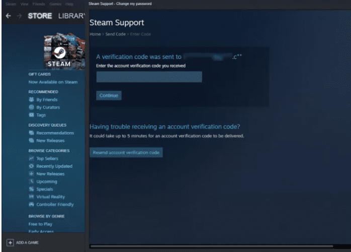 5. Cliquez sur Envoyer par e-mail un code de vérification du compte.