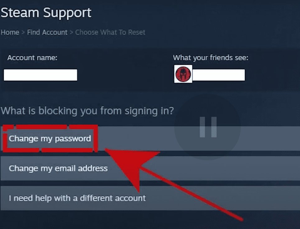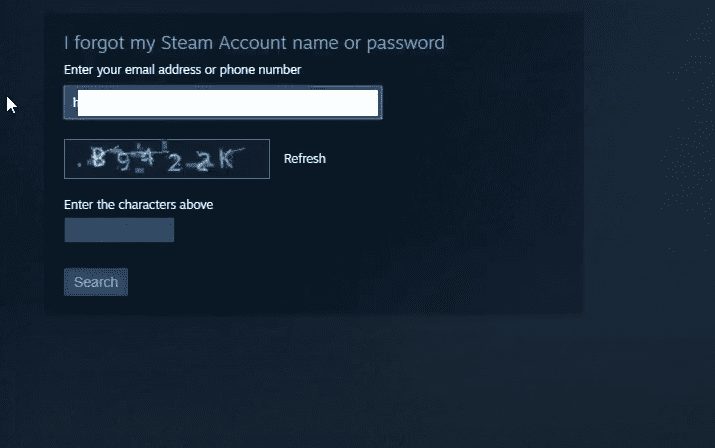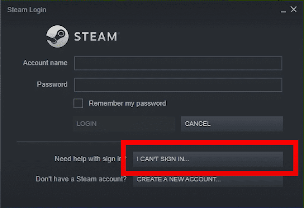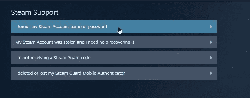 3. Choisissez J'ai oublié mon nom de compte Steam.
