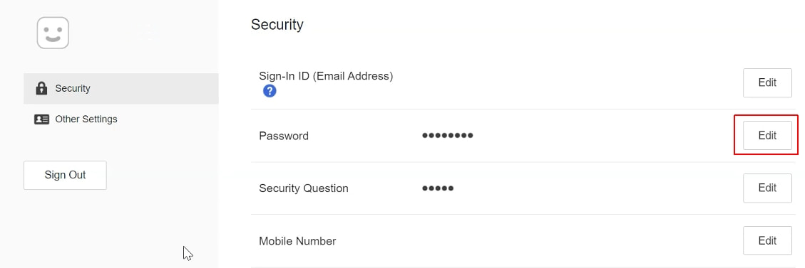 5. Cliquez sur Edit (Modifier) à droite de la ligne Password (Mot de passe).