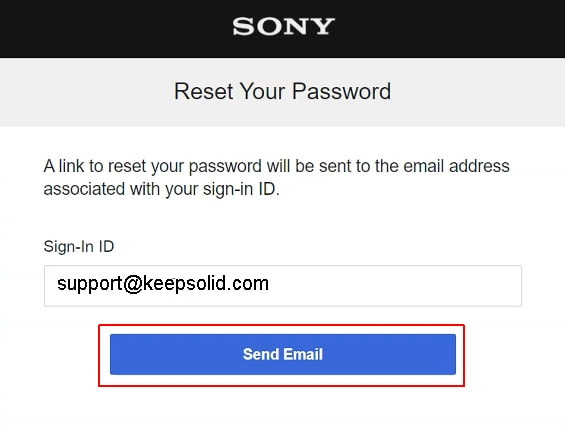 4. Saisissez l'adresse électronique à laquelle votre compte PSN est lié et cliquez sur Send Email (Envoyer l’email).