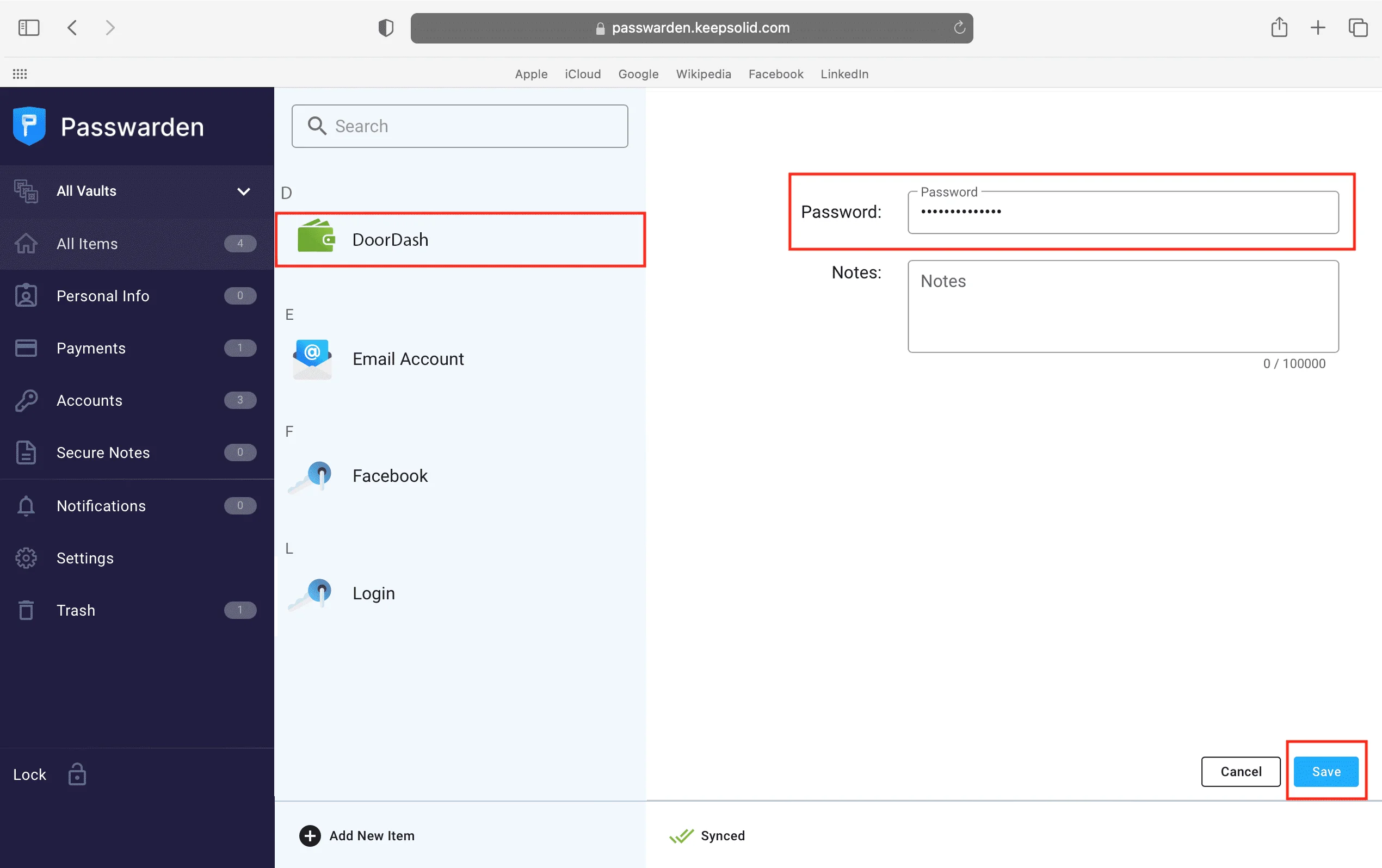 Passwarden possède de nombreux protocoles tels que le cryptage à l'épreuve des balles, le cryptage AES 256 bits et le protocole EC p-384 qui feront en sorte qu'aucune fuite ou brèche ne se produise et que tes codes d'accès soient sécurisés. Il empêche également la perte de données.