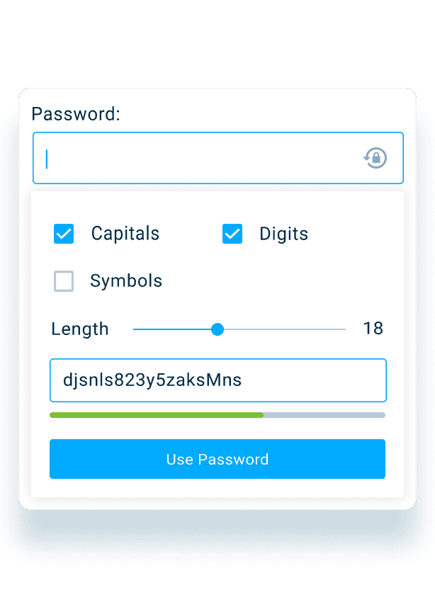 Crée des combinaisons fortes comprenant des chiffres, des caractères et des lettres majuscules et Sauvegarde-les instantanément dans le stockage de données cryptées. Garde tous tes mots de passe en sécurité et accède-y à tout moment et n'importe où!
