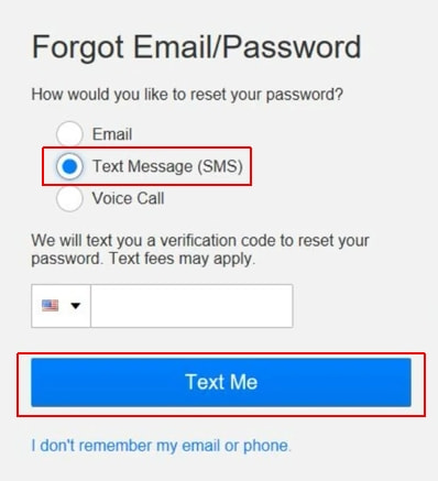 5. Alternatively, you can choose the Text Message option in step 3. Enter your phone number and click on Text me.