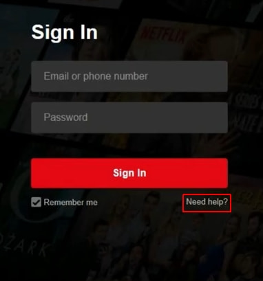 2. Click on Need help? in the sign-in form.