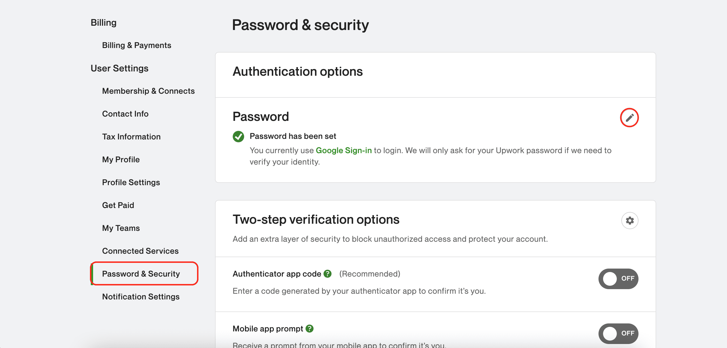 How to Change Upwork Password