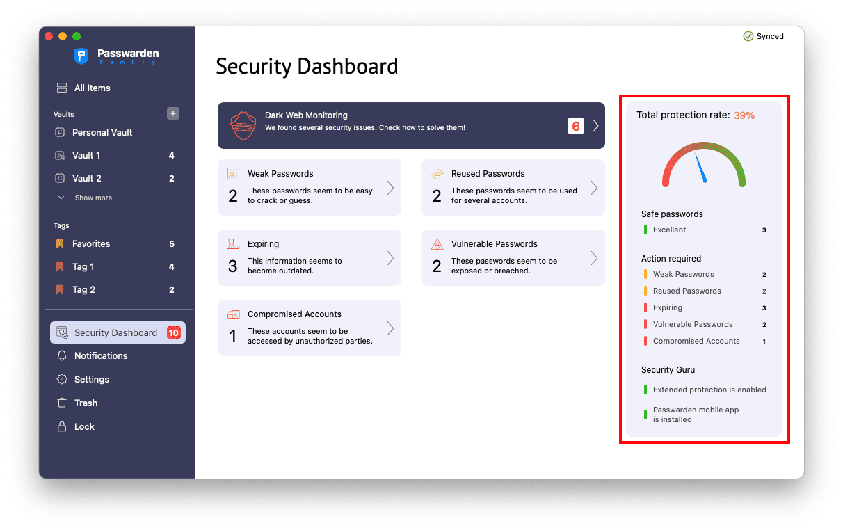 Great! Now you know how to manage our password security checker and keep your items safe. Go on reading to learn more about the sections of the Security Dashboard.