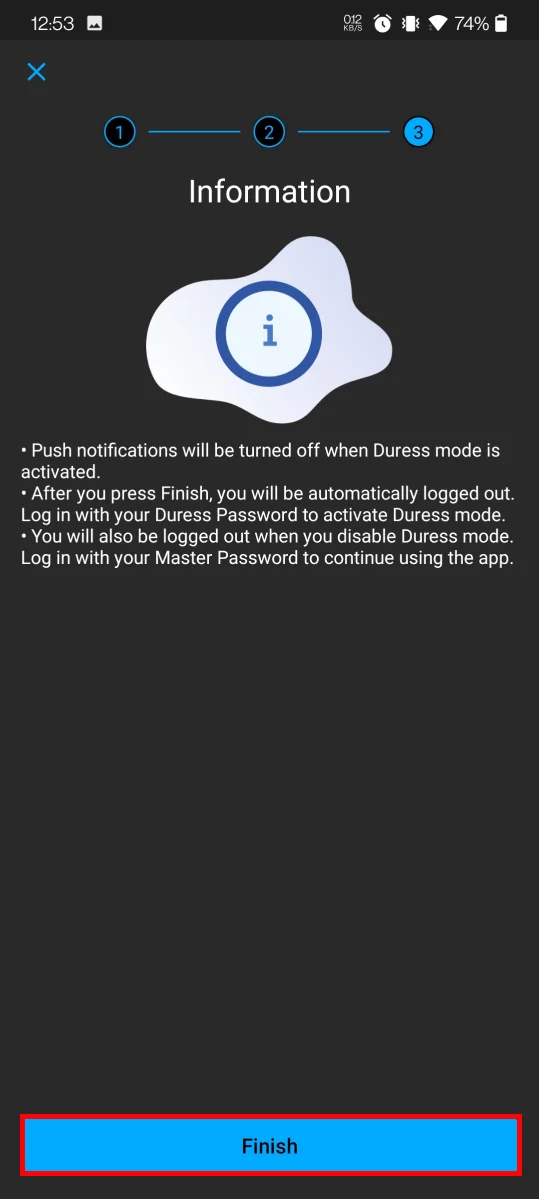 2. Duress Mode(緊急モード)セクションでSet Up Duress Password(緊急パスワードの設定)をタップします。