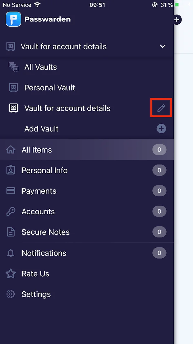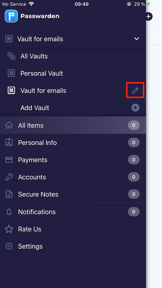 1. サイドバーメニューに移動し、Add Vault(Vaultの追加)をタップします。