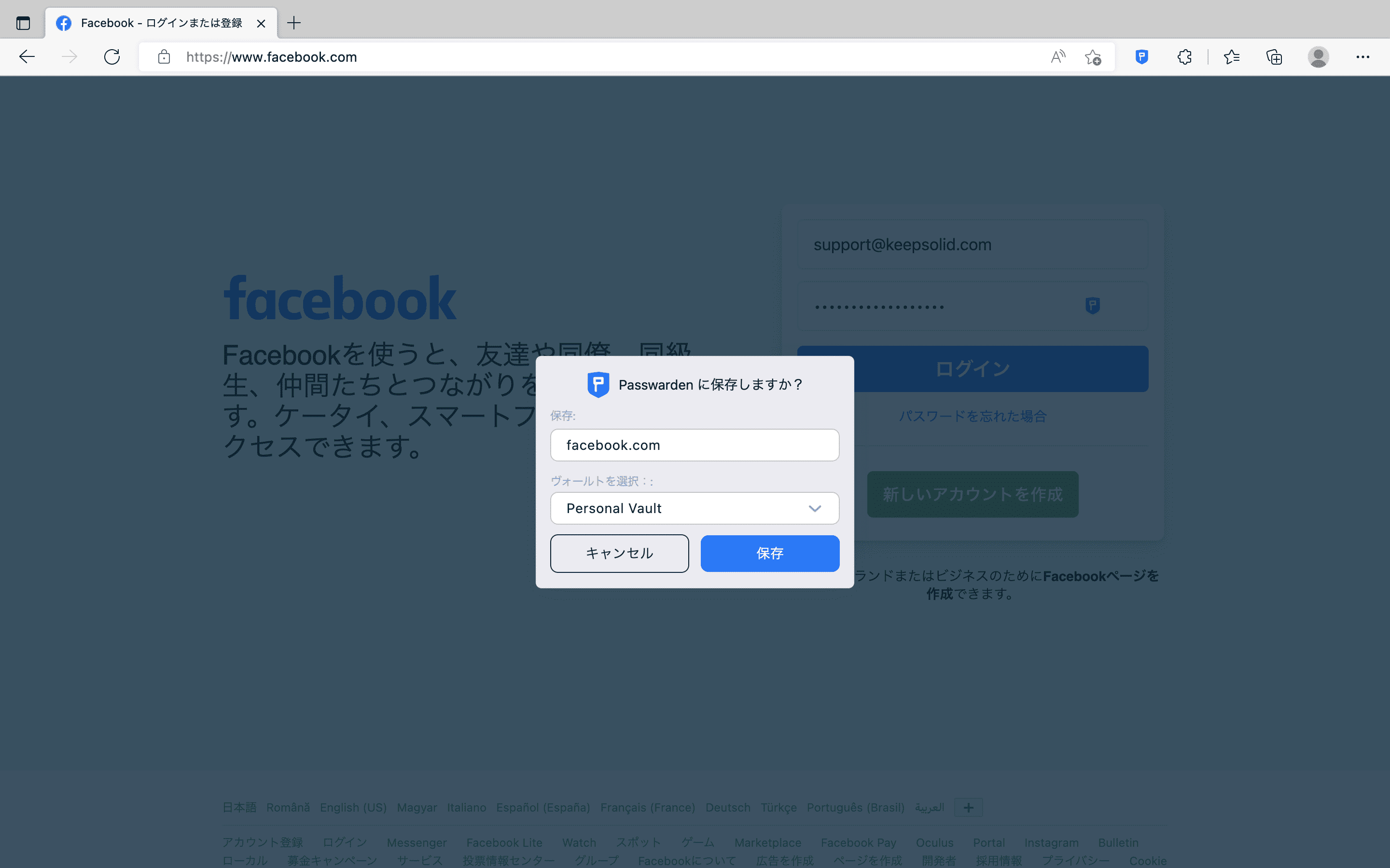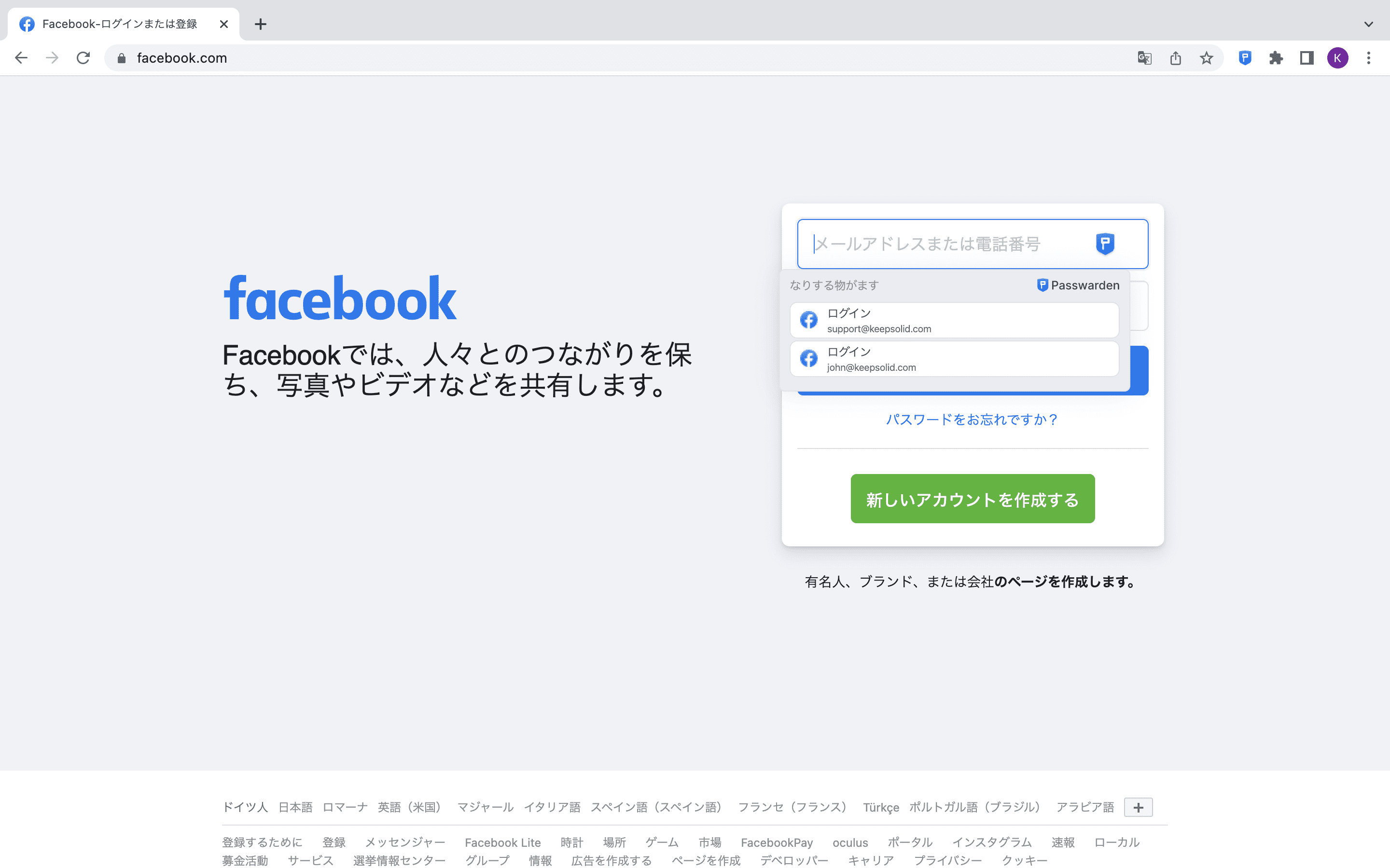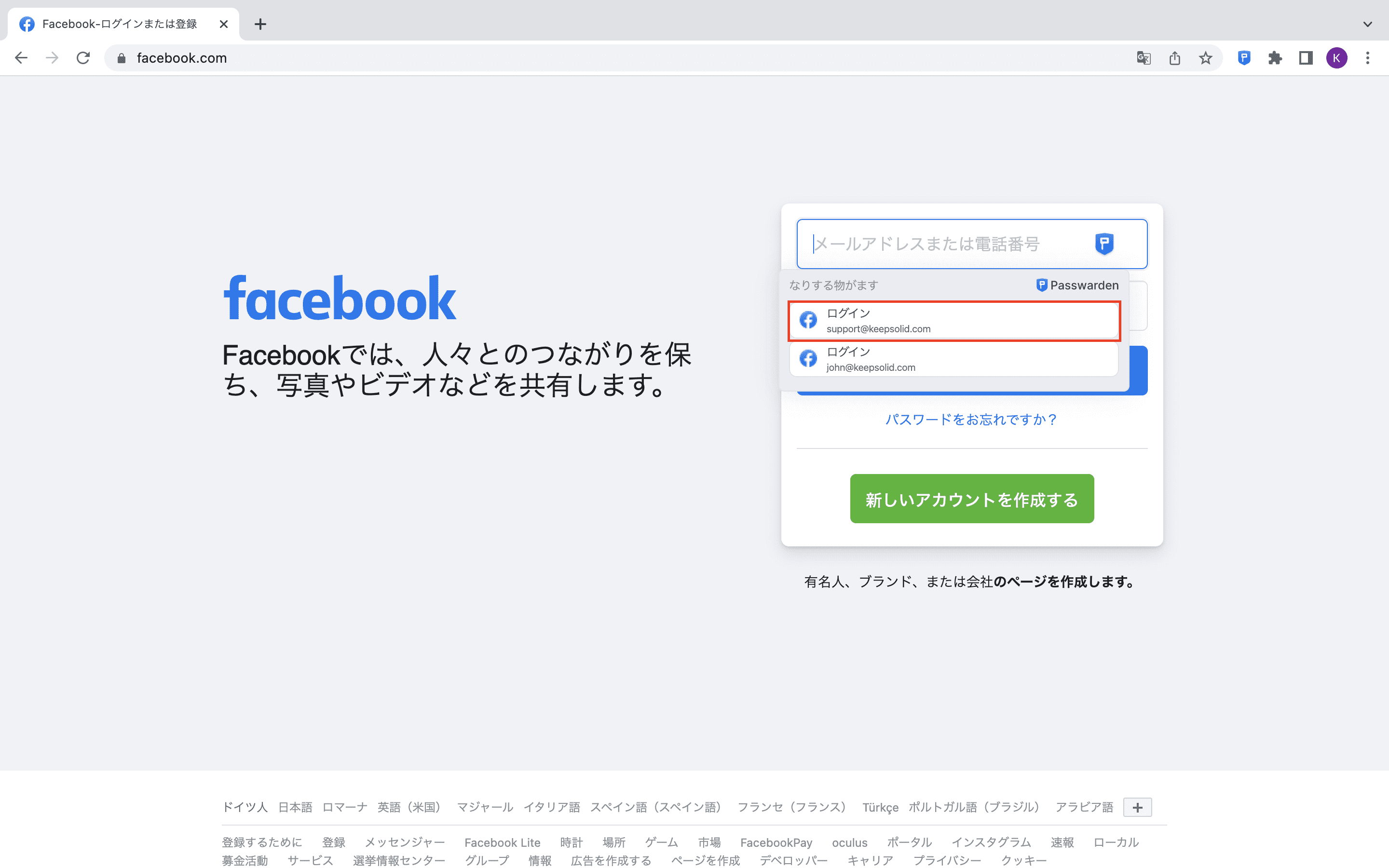 1. 任意のWebサイトにアクセスし、例えばFacebookを開いて、通常通りサインインします。