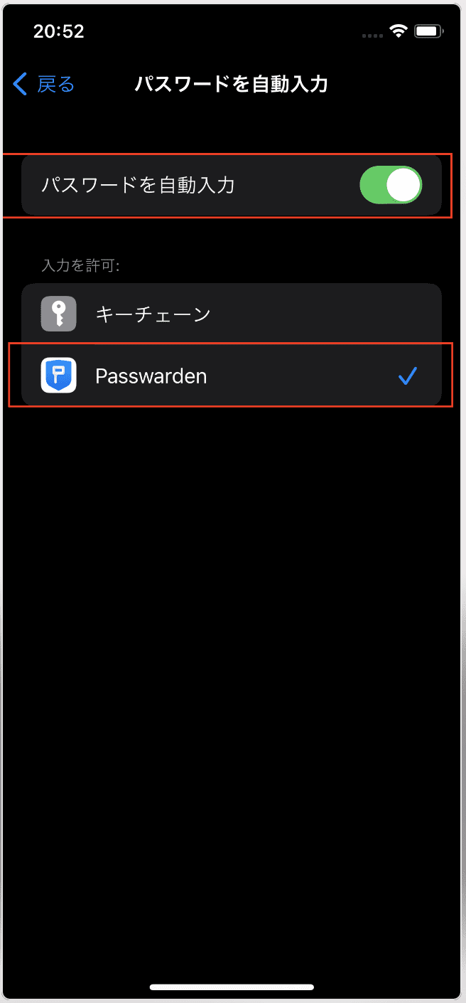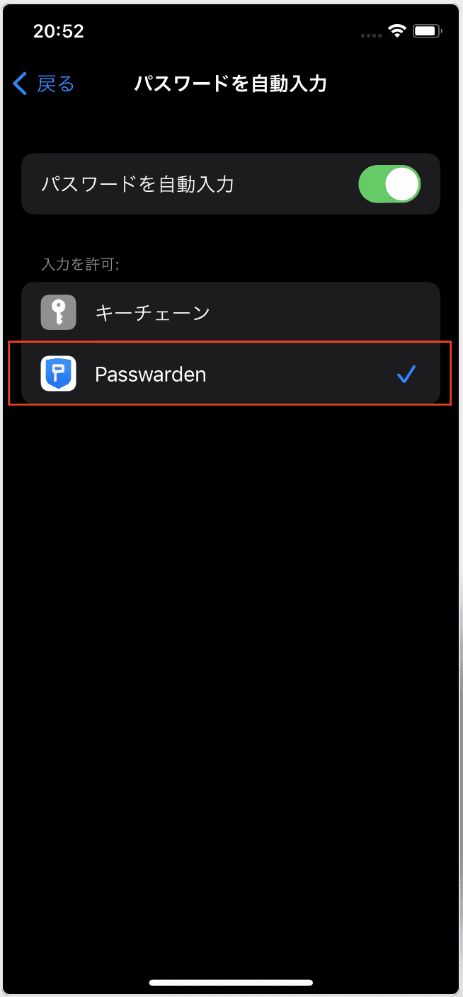注:キーチェーンが有効になっている場合、Passwardenの代わりにiCloudキーチェーンに保存されているパスワードを使用するよう求められます。
