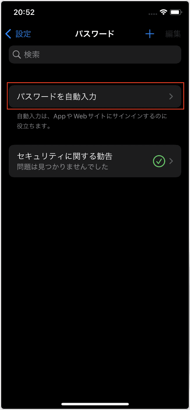 2. AutoFill Passwords(パスワードの自動入力)をタップします。