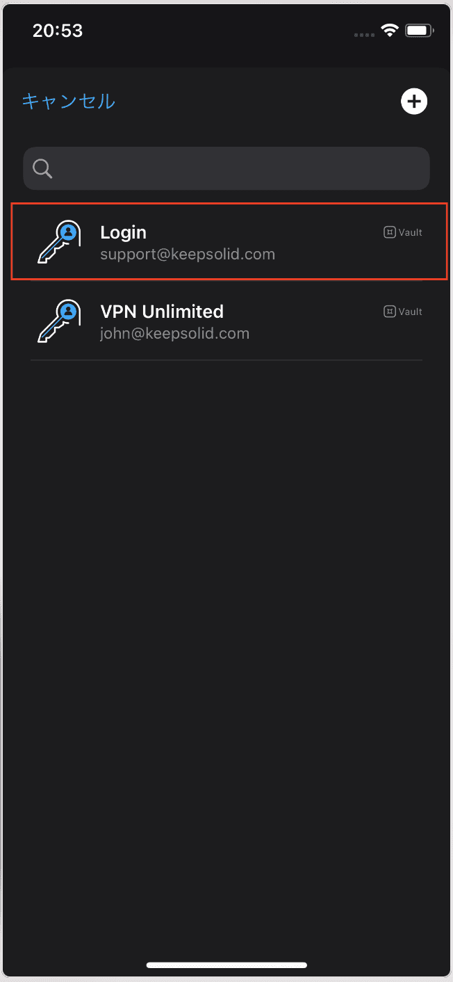 注: VPN Unlimitedアプリを例として挙げています。Passwardenの自動入力機能は、iOSデバイスにインストールされているすべてのアプリケーションで正常に機能します。